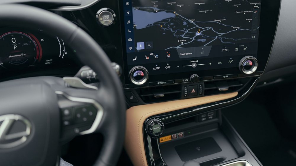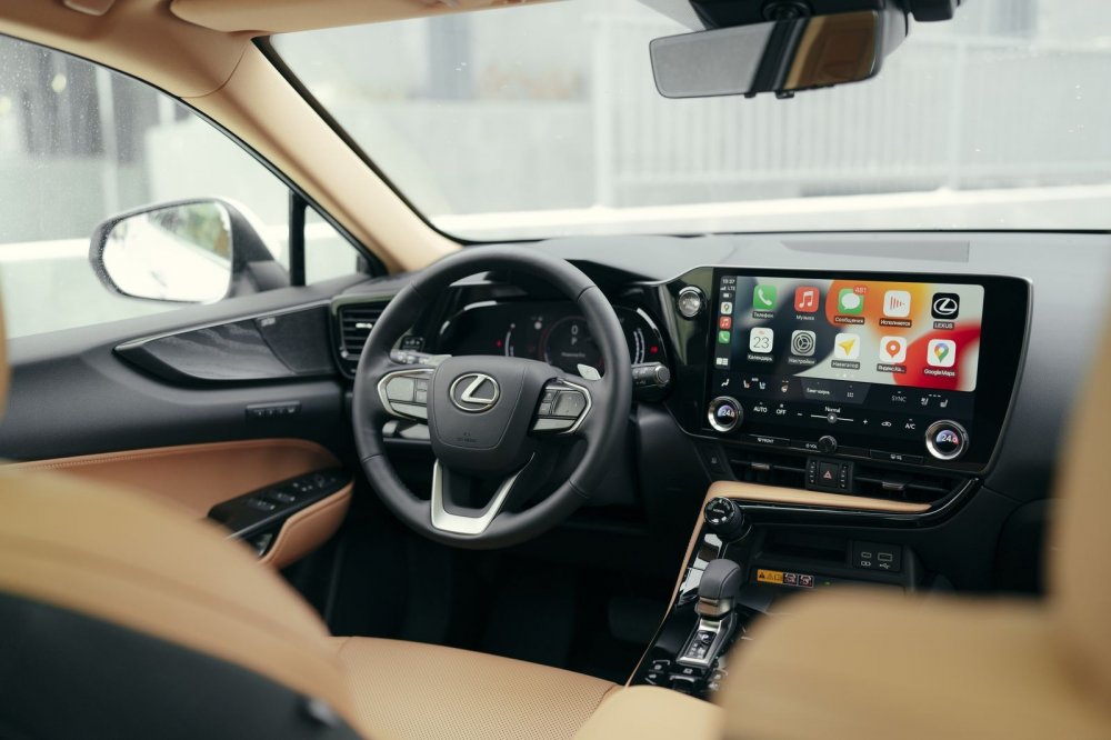 Впрочем, ручки – это лишь приятная мелочь, главная революция произошла в технике. Например, NX стал первым в истории Lexus подзаряжаемым гибридом. Этим может похвастаться «старшая» версия 450h+, у которой помимо бензинового двигателя есть два электромотора, доводящие суммарную отдачу до 306 л.с., и батарея на 18 кВт∙ч, позволяющая проехать 63 км на электротяге. Однако у нас таких машин не будет, как и обычных гибридов 350h без большой батареи и возможности подзарядки от сети. Впрочем, кое-что досталось и нам: самым интересным стоит считать новый 2,4-литровый турбомотор, о которым мы поговорим подробнее. Ну а пока переместимся в салон и оценим концепцию «Tazuna», которая должна облегчить жизнь водителю нового NX.
