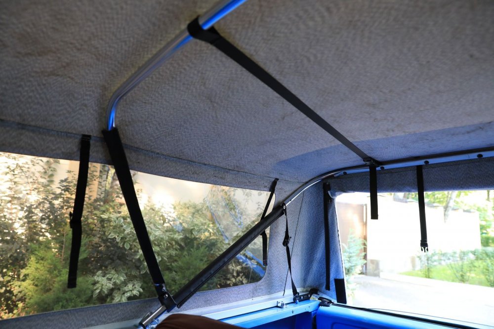 Каркас тента, в принципе, практически такой же, как и на УАЗике: косые дуги, которые вместе с тентом создают самоподдерживающий эффект треугольников.