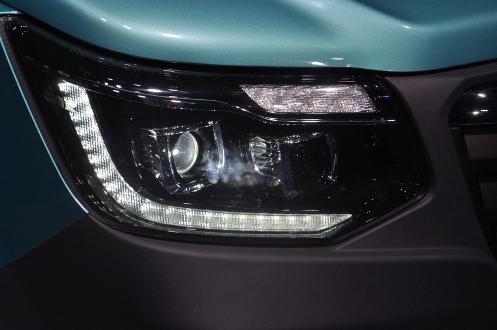 Фары тоже тут совсем другие. Центральная часть фары – это два линзовых элемента в хромированных корпусах на темной поверхности маски. Лампы – светодиодные, включая указатели поворотов. А вот светодиодные ПТФ – это опция, они тут могут быть и галогенными.