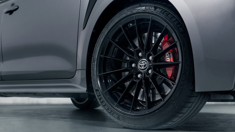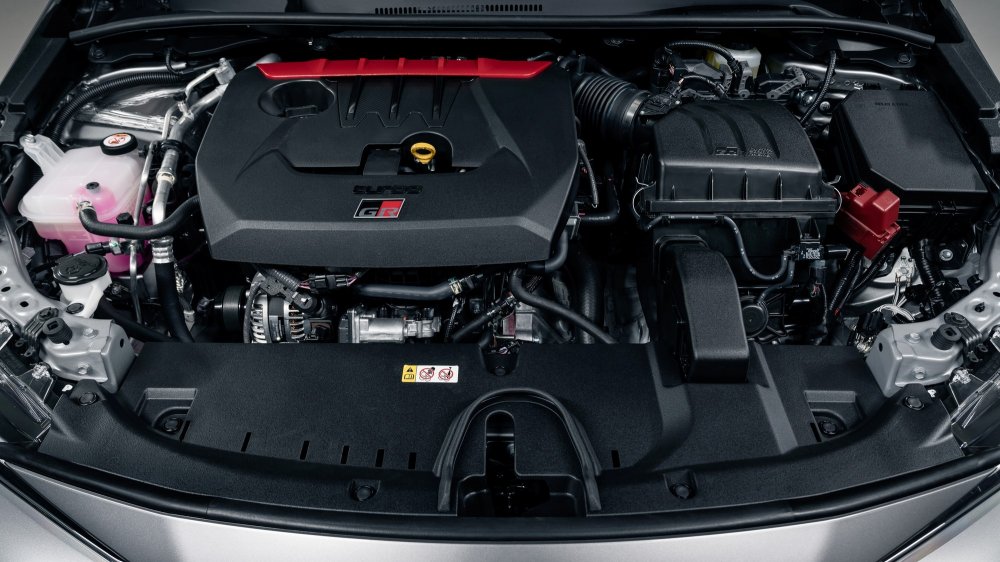 Бензиновая 1,6-литровая «турботройка» G16E-GTS позаимствована у GR Yaris, но её мощность увеличена с 272 до 304 л.с. (достигается при 6500 об/мин), крутящий момент остался прежним — 370 Нм, на GR Corolla он доступен в диапазоне от 3000 до 5550 об/мин. Трансмиссия — тоже как у GR Yaris: коробка передач — только 6-ступенчатая «механика» iMT с функцией автоматической подгонки оборотов двигателя при переключениях, полный привод — с многодисковой муфтой отбора мощности на заднюю ось. Муфта всегда работает с преднатягом: на заднюю ось в зависимости от выбранного режима передаётся 40, 50 либо 70% мощности. За доплату предлагаются передний и задний самоблокирующиеся межколёсные дифференциалы Torsen вместо стоящих по умолчанию свободных.
