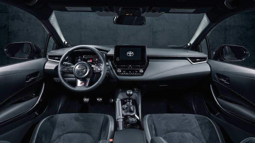 В салоне установлены спортивные передние кресла с замшевой обивкой, спортивный руль, алюминиевые педали, электромеханический ручник заменён классическим рычажным, а на место стандартного щитка приборов пришёл полностью виртуальный 12,3-дюймовый, разработанный специально для этой модели. Экран мультимедийной системы — 8-дюймовый. За доплату предлагаются подогрев руля и сидений, а также премиальная аудиосистема JBL с восемью громкоговорителями (входит в стандартное оснащение версии Circuit Edition). Комплекс электронных ассистентов водителя Toyota Safety Sense 3.0 входит в стандартное оснащение всех версий.
