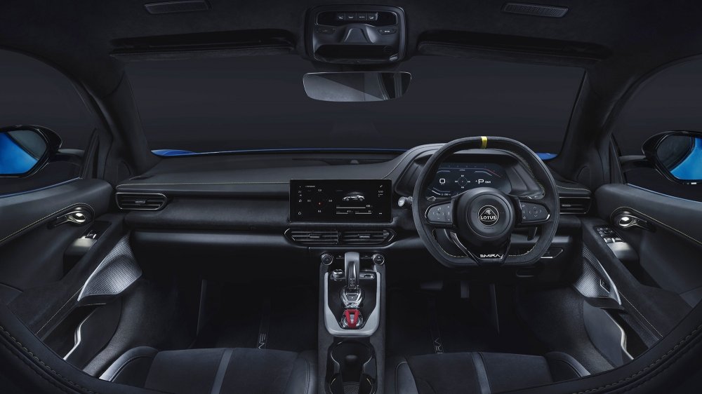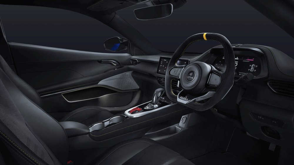 Emira — не только последняя бензиновая модель в истории Lotus, но и самая комфортная: она предлагает два багажника (208 + 151 л), современные электронные ассистенты водителя, климат-контроль, кресла с подогревом и двенадцатью электрорегулировками, 340-ваттную 10-канальная аудиосистему KEF, камеру заднего вида, мультимедийную систему с 10,25-дюймовым сенсорным экраном (есть поддержка Apple CarPlay и Android Auto) и 12,3-дюймовый настаиваемый виртуальный щиток приборов.