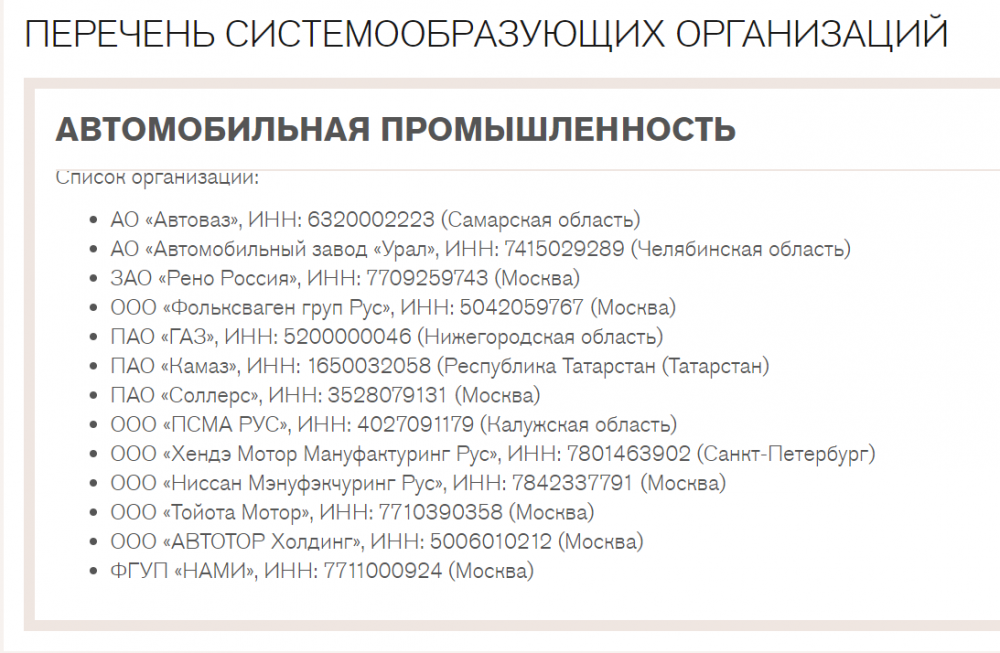«Каникулы Путина», нагрянувшие в конце марта, снова сделали актуальными списки системообразующих предприятий. Напомним, впервые их ввели в кризисном 2008 году для льготного финансирования наиболее важных заводов и компаний, «оказывающих существенное влияние на формирование ВВП, занятость населения и социальную стабильность». Так вот, в первый вариант «коронавирусного» списка вошли почему-то не все автомобильные заводы. Скажем, не было калининградского «Автотора», калужского «Пежо-Ситроен-Мицубиси». Затем список стал пополняться, и вот в понедельник, 27 апреля, Минпромторг опубликовал новый вариант. Его «автомобильная» часть интересна тем, что в ней наконец-то оказались все автомобильные холдинги или заводы РФ (даже бесполезное ФГУП «НАМИ»), за исключением одного предприятия. Какого? Правильно – «Хавейл Мотор Мануфэкчуринг Рус».