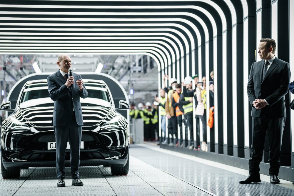 Олаф Шольц и Илон Маск на торжественном запуске берлинской Гигафабрики.