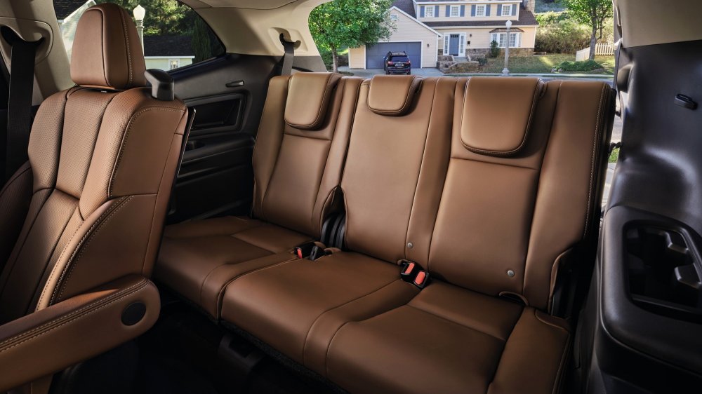 Главная обновка в салоне — стандартный для всех версий 11,6-дюймовый мультимедийный сенсорный экран вместо прежних 6,5- и 8-дюймовых. Слева и справа от экрана сохранились физические клавиши и рукоятки, которыми удобно пользоваться вслепую. Операционная система поддерживает беспроводные смартфонные протоколы Apple CarPlay и связь Android Auto. Штатная (не смартфонная) навигация доступна в виде опции, равно как система кругового обзора и громкая связь через микрофоны и динамики между водителем и пассажирами. Стандартная кормовая камера заднего вида получила омыватель. Количество подстаканников в салоне не изменилось — их по-прежнему 19. Во втором ряду может быть установлен трёхместный диван либо два раздельных капитанских кресла, третий ряд всегда трёхместный.