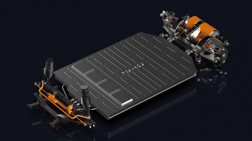 Силовая установка — это два электромотора (по одному на ось) с совокупной отдачей в 300 кВт (408 л.с.) и 620 Нм. Разгон до 100 км/ч занимает 4,9 с, максимальная скорость — 210 км/ч. На рендере платформы виден только один электромотор на задней оси, передний почему-то не показан. В свою очередь превмостойки показаны только на передней подвеске, а на задней их нет. Штатная размерность шин — 255/65 R 18. Ёмкость вмонтированной в пол плоской батареи — 90,9 кВт·ч, запас хода на одной зарядке — 500 км (по какому циклу, не указано). Максимальная мощность зарядки — 150 кВт. Снаряженная масса кроссовера — 2061 кг.