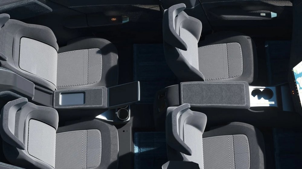 В салоне — четыре индивидуальных кресла с «нулевой гравитацией», ковры и роскошная отделка из экологически чистых материалов. Центральный мультимедийный экран на передней панели имеет диагональ 15,6 дюйма, щиток приборов — 10 дюймов. В стандартное оснащение входят 6 подушек безопасности, современные электронные ассистенты водителя, климат-контроль, премиальная аудиосистема Devialet, электропривод дверей (задние открываются против основного хода), прозрачная крыша и прочие удобства. Объём основного багажника — 600 л, дополнительного переднего — 80 л.