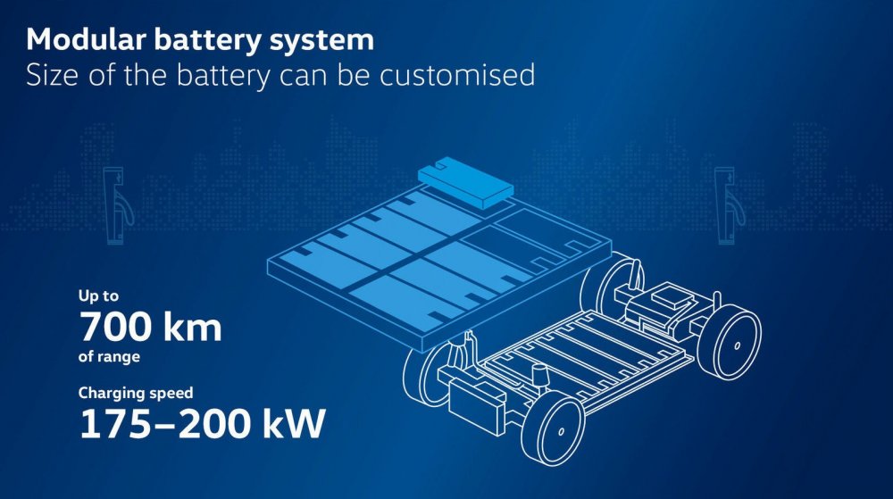 Платформа MEB+ получит новые стандартизированные аккумуляторные ячейки, которые изначально разрабатывались для SSP, их производство начнётся в 2025 году на заводе в Зальцгиттере. Максимальный запас хода на одной зарядке вырастет примерно на треть и составит 700 км по циклу WLTP, максимальная мощность зарядки с нынешних 135 кВт увеличится до 175-200 кВт.