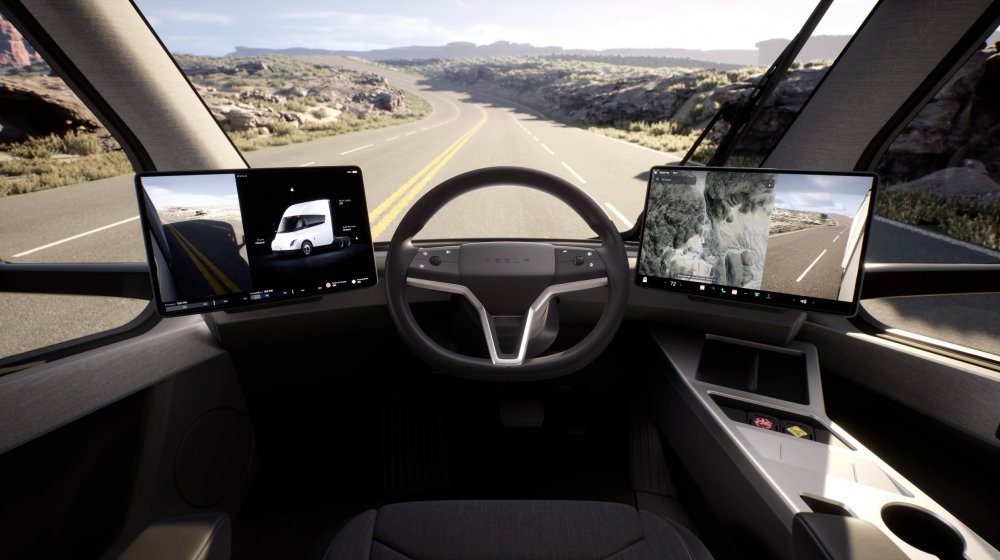 Два больших экрана вместо традиционной панели приборов — ещё одно спорное решение: на ярком солнце они будут слишком тусклыми, ночью — слишком яркими, особенно если выводить на них картинки с камер для ориентирования. Вдобавок водителю придётся часто отвлекаться от дороги, так как пользоваться вслепую сенсорными экранами невозможно.