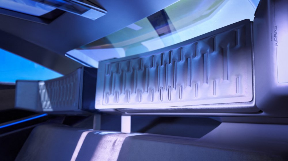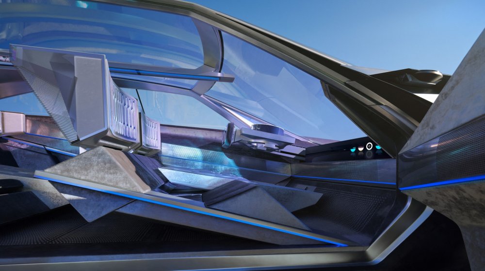 Салон концепта призван показать преимущества электромобильной архитектуры, в которой техническая начинка занимает очень мало места. Передней панели как таковой нет, а широкий мультимедийный экран отнесён максимально вперёд, чтобы дать передним седокам больше свободного пространства.