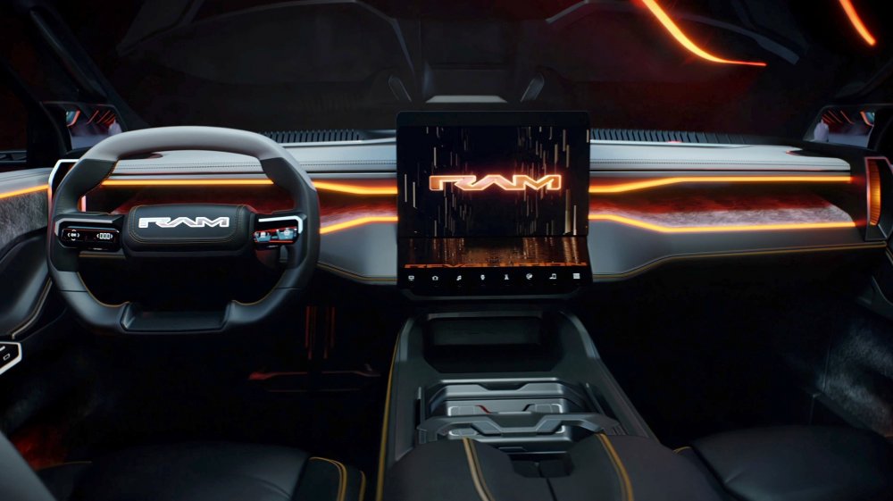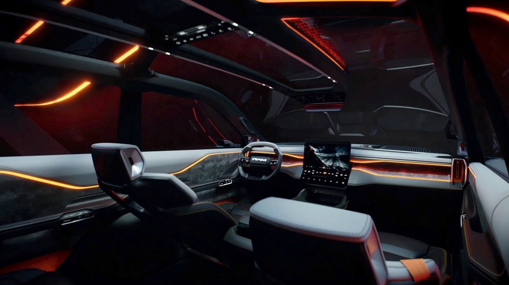 Что будет точно, так это новый сросшийся логотип Ram и напоминающие камертоны светодиодные фары, а вот кабина без центральных стоек, камеры вместо зеркал, объединённая с лобовым стеклом полностью прозрачная крыша с электрохромным покрытием и колёса с фиксированными центральными колпачками, как у Rolls-Royce, — под вопросом.