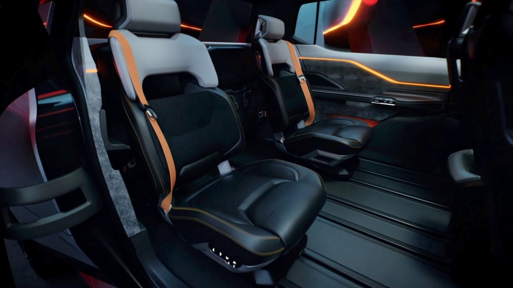 В основе Ram 1500 Revolution лежит анонсированная в 2021 году рамная электромобильная платформа STLA Frame. Компактные электромоторы позволили заметно увеличить полезное пространство кабины по сравнению с «углеводородными» пикапами и разместить в ней третий ряд сидений, чего прежде никто не предлагал. Впрочем, третий ряд — не полноценный и напоминает второй ряд у полуторных кабин: откидные стульчики позволяют взять попутчиков на небольшую дистанцию либо использовать имеющуюся площадь под багаж.