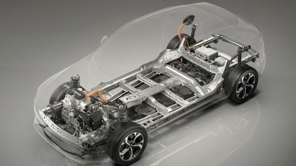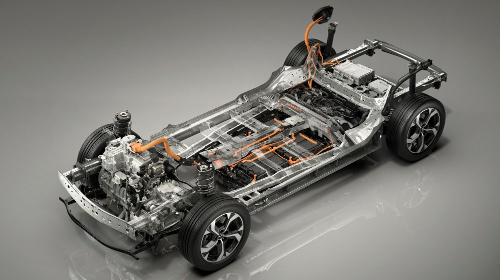 Plug-in гибридная версия e-Skyactiv R-EV стала третьей в линейке кросс-купе MX-30 после полностью электрической и бензиновой с мягкогибридным довеском. Новая версия — это range extender гибрид последовательного типа: электромотор, генератор и РПД скомпонованы спереди под капотом в один блок шириной 840 мм, они соосны, но при этом Mazda утверждает, что РПД механически не связан напрямую с передними ведущими колёсами, а только крутит генератор, тот вырабатывает электричество и запасает его в интегрированной в пол кузова батарее ёмкостью 17,8 кВт·ч.