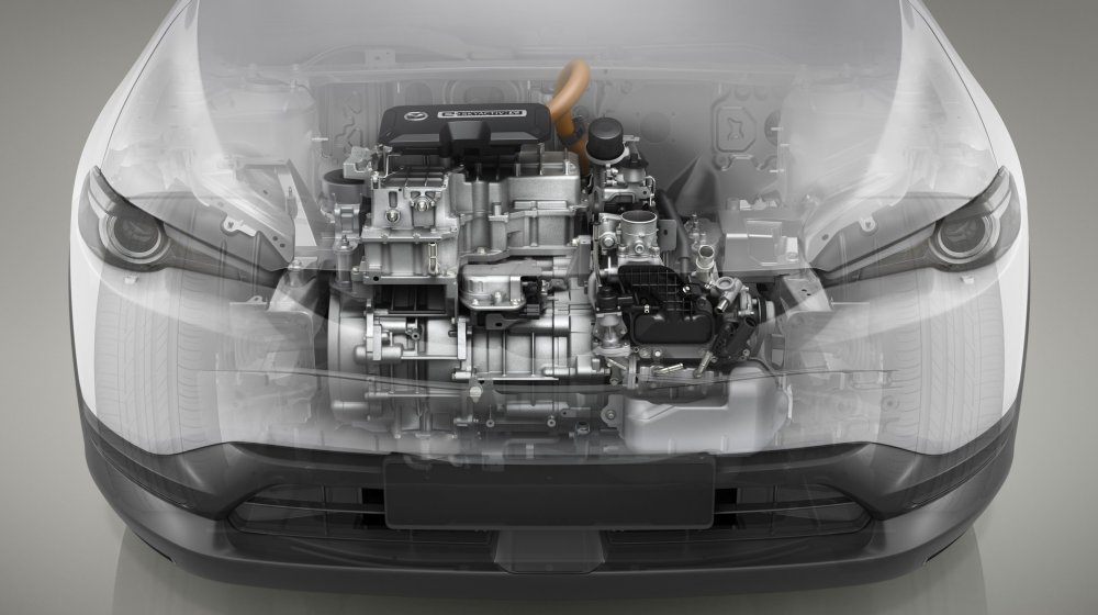 Долгожданный камбэк двигателя Ванкела состоялся! Однороторный 830-кубовый бензиновый роторно-поршневой двигатель (РПД) нового поколения (заводской индекс 8C) установлен под капотом кросс-купе Mazda MX-30 и работает в тандеме с электромотором.