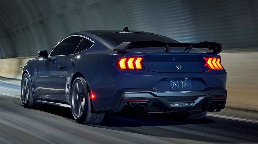Мировая премьера «седьмого» Мустанга состоялась в сентябре прошлого года, в декабре Ford раскрыл мощность двигателей всех заготовленных для старта продаж версий, в том числе Dark Horse, название которой переводится с английского как «тёмная лошадка». Напомним, что Mustang Dark Horse оснащён всеми ездовыми опциями версии Mustang GT (в том числе электромеханическим ручником, позволяющим легко отправлять машину в дрифт даже водителям-новичкам) и рядом уникальных для версии Dark Horse особенностей, в том числе форсированным до 507 л.с. и 567 Нм атмосферным 5,0-литровым V8 Coyote, более жёсткой подвеской, более мощными передними тормозами Brembo и более развитым аэродинамическим оперением.