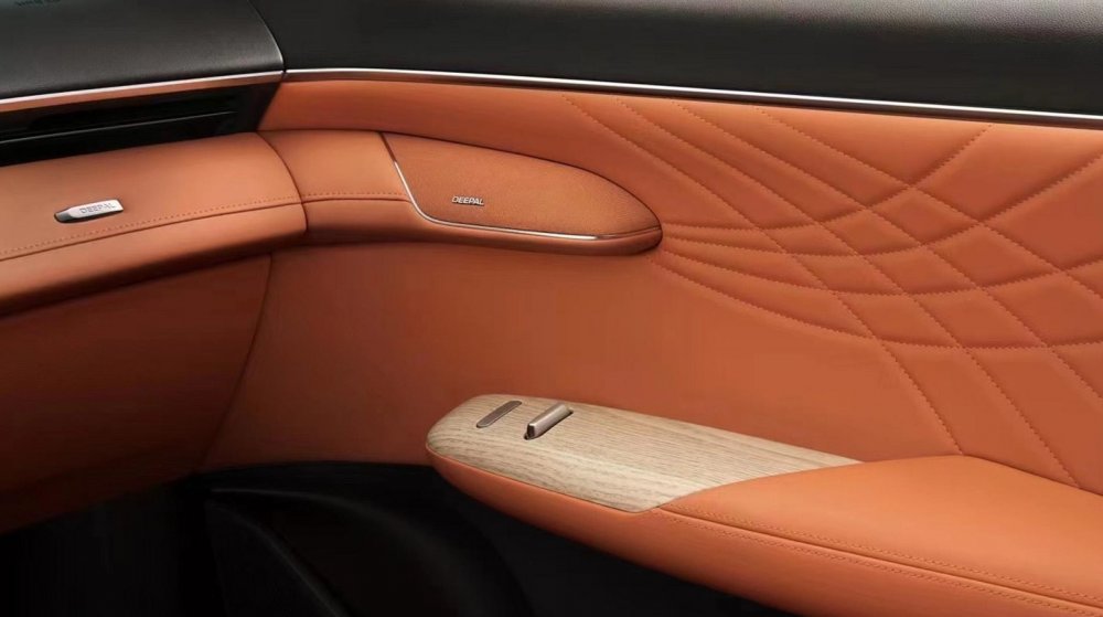 Deepal S7 снаружи во многом цитирует родственный лифтбек, но имеет более замысловатый пятиместный салон: передняя панель напрочь лишена физических кнопок и щитка приборов — оперативные показания водителю даёт проекционный экран на лобовом стекле. Центральный мультимедийный дисплей подвешен на шарнире, его положение можно регулировать. В подголовники передних кресел интегрированы громкоговорители аудиосистемы. Чтобы любую дверь окрыть изнутри, нужно нажать на хромированную кнопку, но для подстраховки за подлокотниками имеются скрытые традиционные ручки рычажного типа.