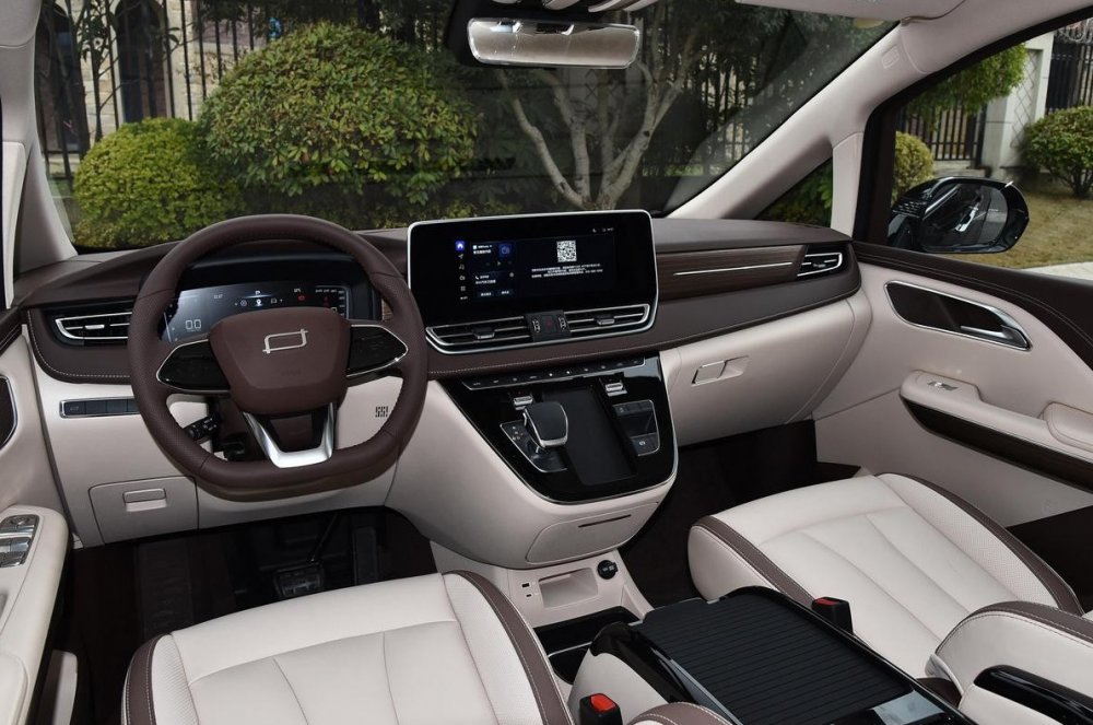 Внутри FAW Bestune M9 многое перенял от Hongqi HQ9: у минивэна «попроще» такие же передняя панель, центральная консоль и карты дверей. Но руль – оригинальный. Кроме того, в отделке интерьера «девятки» использованы другие материалы. Как и HQ9, новый вэн Bestune имеет семиместный салон с двумя раздельными креслами во втором ряду, для которых предусмотрены откидные подставки для ног и функция массажа. Хотя собственные пульты управления всеми настройками все же остались прерогативой пассажиров Hongqi HQ9 (в подлокотники встроены сенсорные панели).
