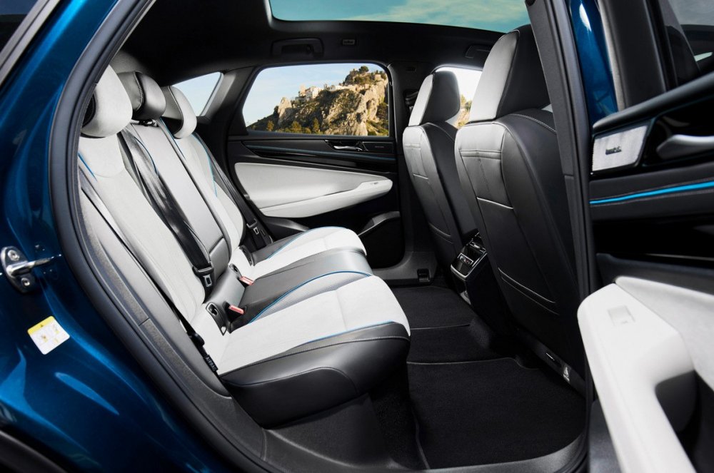 В салоне – крохотный экран приборки (роль приборной панели возложена на проекционный дисплей с дополненной реальностью, он идет уже «в базе»), руль с сенсорными кнопками и мультимедиасистема с 15-дюймовым планшетом. Для модели также предусмотрены панорамная крыша с «умным стеклом» (его можно сделать непрозрачным), «умный» же климат-контроль (дефлекторы способны сами менять направление воздушных потоков, плюс электроника может включить «климат» заранее, распознав ключ у приближающегося к лифтбеку водителя), передние кресла с вентиляцией и функцией массажа, система дистанционной парковки и множество других электронных помощников.