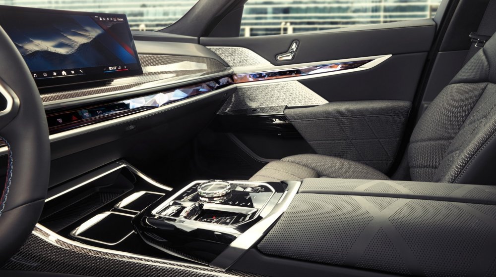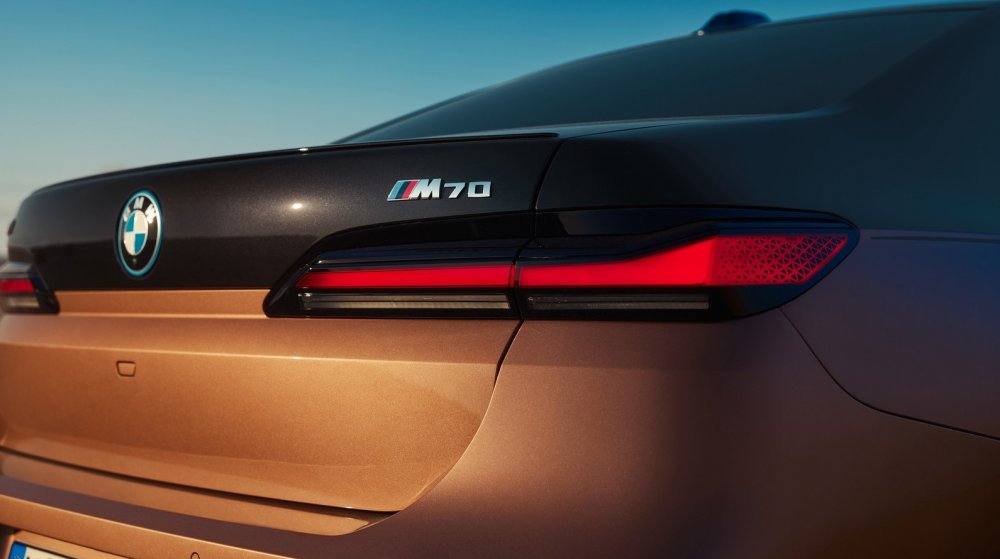 Тем не менее BMW i7 M70 xDrive имеет спортивную настройку адаптивной пневмоподвески с активными стабилизаторами поперечной устойчивости, усиленный кузов, мощные М-тормоза, более эффективное по части прижимной нагрузки аэродинамическое оперение: коэффициент сх по сравнению с таковым у BMW i7 xDrive60 увеличен с 0,24 до 0,26. Внешне идентифицировать «эмку» можно по более агрессивному дизайну бамперов, 21-дюймовым колёсным дискам особого дизайна, показанная на фотографиях двухцветная окраска кузова доступна в виде опции. Очень комфортный салон между тем не очень-то способствует «боевому» духу, в качестве основного материала обивки можно выбрать шерсть и кашемир.