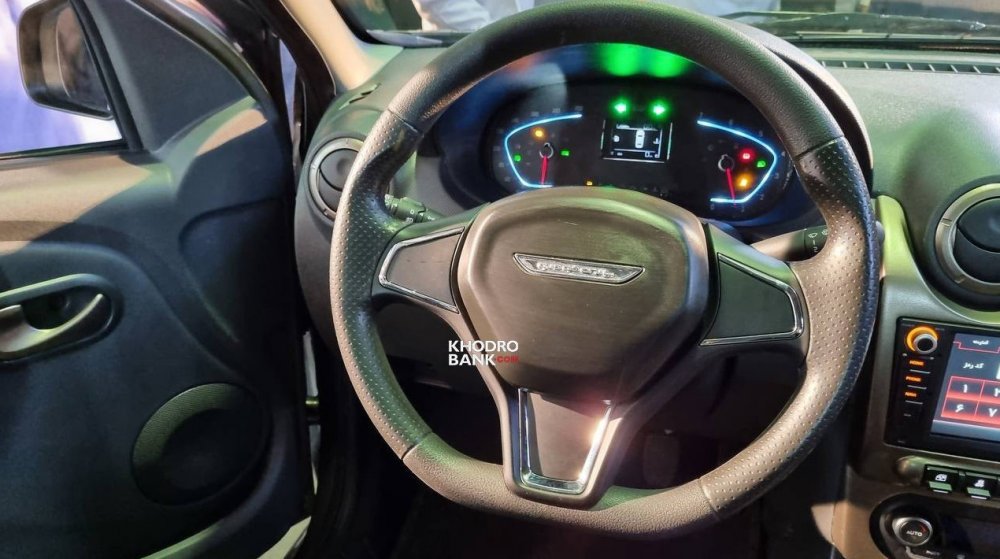 Салон «первого» Логана пережил «косметический ремонт» в иранском стиле: новый трёхспицевый руль, новый щиток приборов, новый блок микроклимата, новая мультимедийная система с сенсорным экраном и даже новые клавиши стеклоподъёмников на центральной консоли, но при этом старый реношный рычаг переключения передач, старые сиденья и дверные карты.