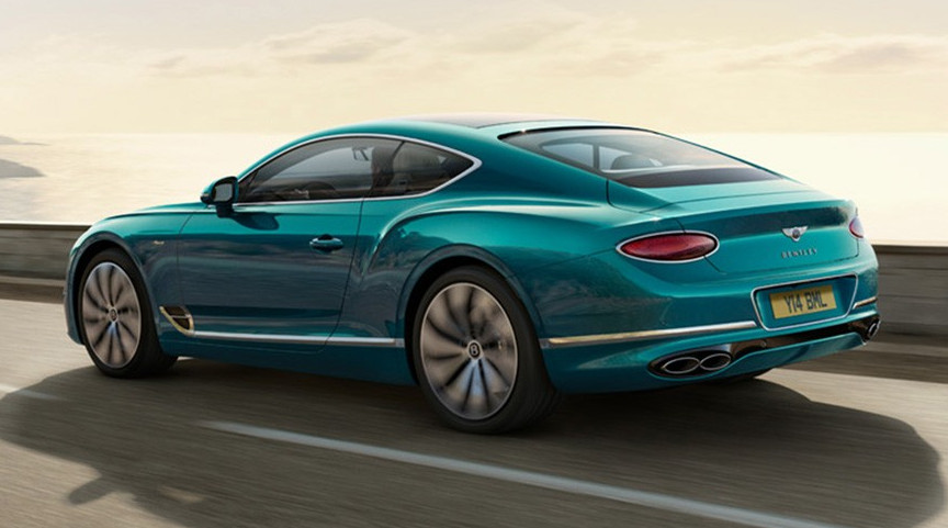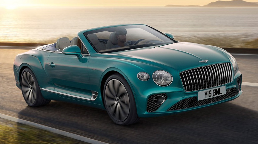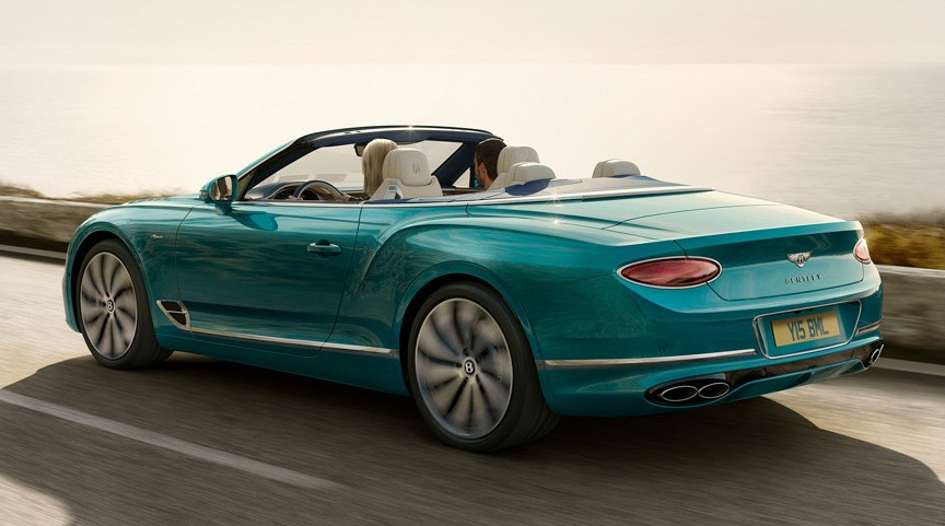 Помимо этого, Continental GT и GTC Azure в ходе обновления получили расширенную палитру цветов кузова – её пополнил сине-зелёный вариант под названием Topaz Blue. Профиль украсили другие 22-дюймовые колёсные диски с десятью спицами.
