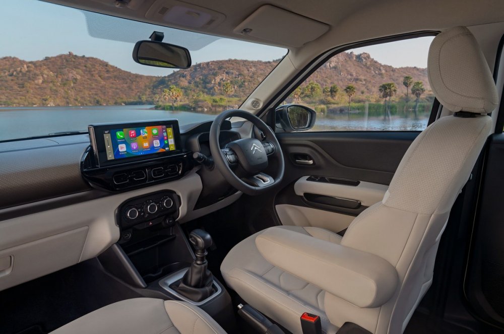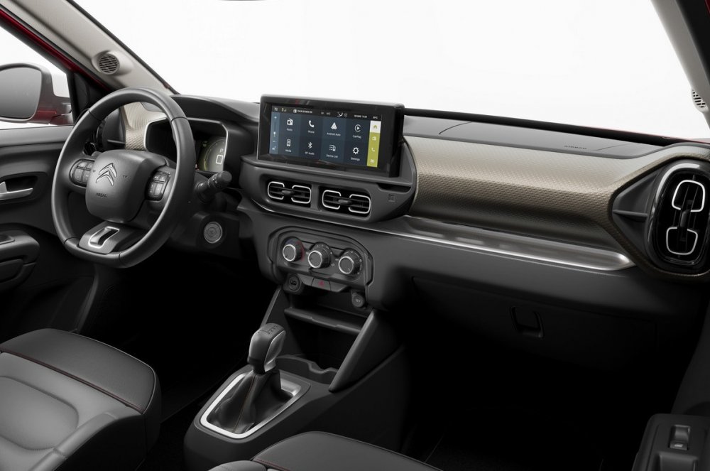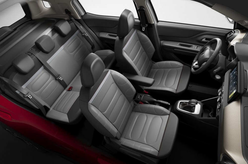 Передняя часть салона почти такая же, как у соплатформенного хэтчбека. При этом кроссоверу отрядили цветной 7-дюймовый экран приборки, тогда как C3 имеет небольшой монохромный дисплей. Необычными получились дефлекторы климатической установки для пассажиров второго ряда – их установили на потолке. Для паркетника также заявлены мультимедийная система с 10-дюймовым тачскрином и пять USB-разъемов. Полный список оборудования опубликуют позже.