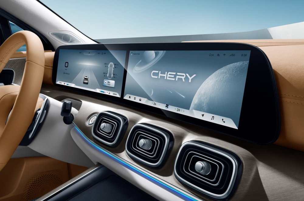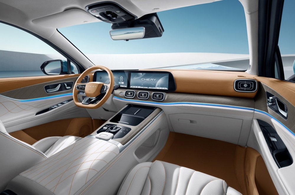 На данный момент у Tiggo 9 три комплектации. В арсенале самого дешевого кроссовера значатся: 19-дюймовые колеса, матричные фары, панорамный люк в крыше, табло (объединенные экраны приборки и мультимедиа-системы, каждый диагональю 12,3 дюйма), климат-контроль, камеры кругового обзора, задний парктроник, адаптивный круиз-контроль, системы автоторможения и удержания в полосе движения.