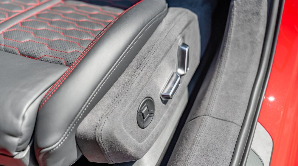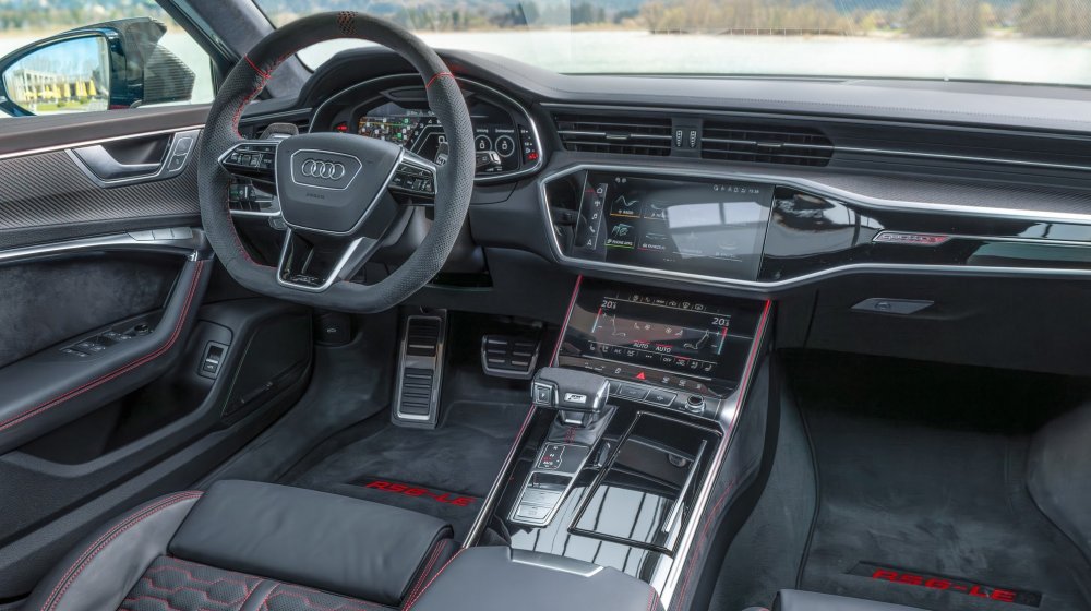 Салон получил новую отделку кожей, углепластиком и похожей на замшу огнеупорной тканою Dinamica Soul. Руль обит алькантарой, на верхней части обода вышита метка нулевого положения. Кнопка запуска двигателя и селектор АКП получили шильдики Abt. Для управления настройками силовой установки нужно установить специальное приложение My Abt на смартфон и подключить его к заводской мультимедийной системе MMI, чтобы можно было пользоваться и менять параметры прямо во время движения.