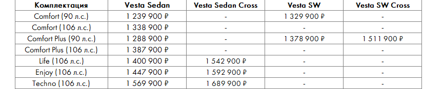 Обновлено: появился полный прайс-лист рестайлингового семейства Lada Vesta, текст поправлен в соответствии с поступившей информацией.