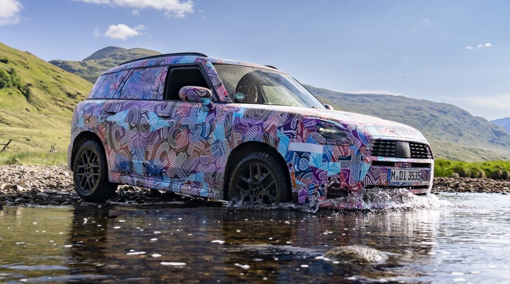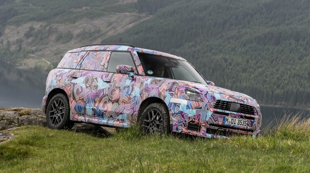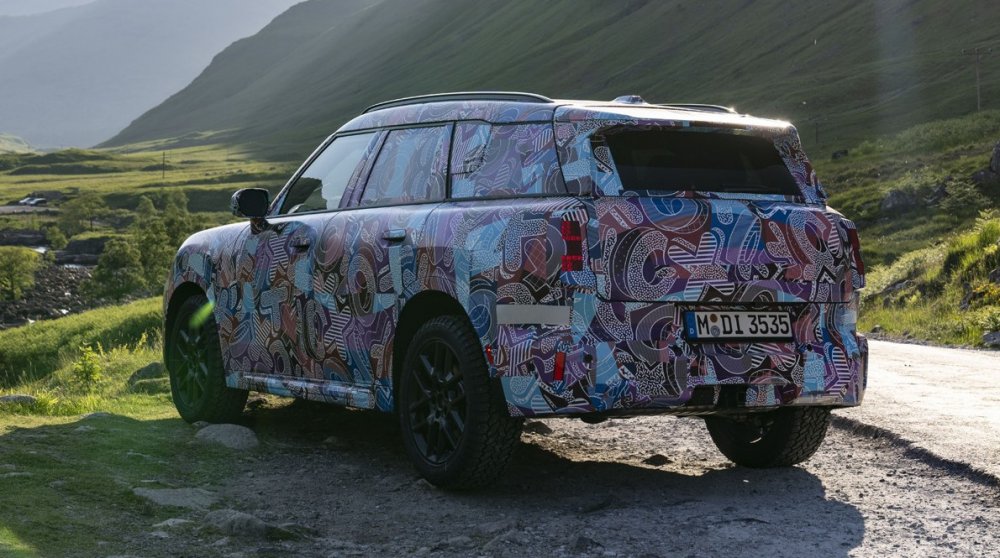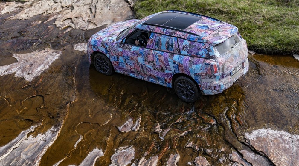 Теперь в Mini поделились свежей порцией снимков прототипа, на этот раз его «одели» в яркую цветную плёнку. Как отметили в компании, тестовый образец на фотографиях проходит испытания, двигаясь по бездорожью Шотландского нагорья. Причём для теста британская компания решила выбрать маршрут из фильма «007: Координаты Скайфолл» 2012 года.
