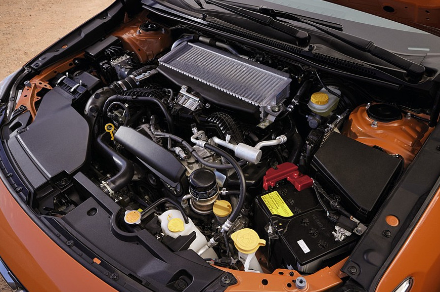 Актуальный Subaru WRX оснащается 275-сильным турбомотором FA24 объёмом 2,4 литра, его максимальный крутящий момент равен 350 Нм. У базовой версии этот двигатель работает в паре с шестискоростной механикой, а за доплату доступен бесступенчатый автомат. Привод – только полный.