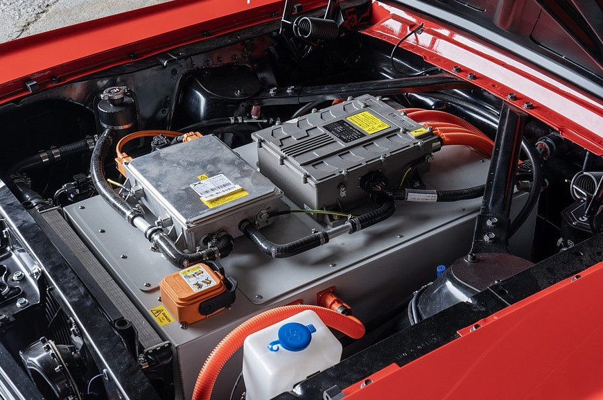 Для изготовления электромода требуется оригинальный Ford Mustang первого поколения, выпущенный в 60-х до первого крупного рестайлинга, он разбирается до винтика, кузов реставрируется и усиливается. Салон также проходит полную переборку, получает новые материалы отделки, новые спортивные передние кресла, современную систему климат-контроля, мультимедийный экран и ряд других комфортных дополнений. Кузов окрашен в фирменные цвета Alan Mann Racing — красный с золотым.
