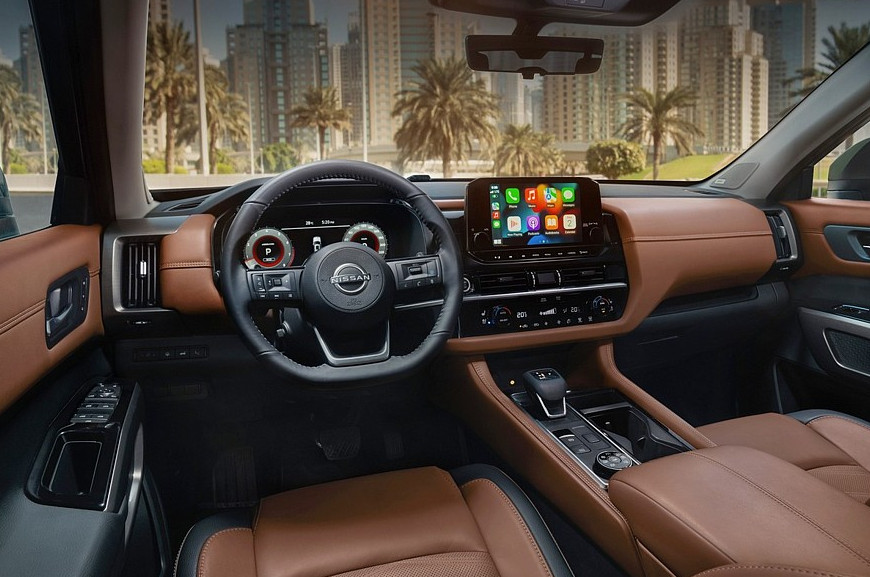 Интерьер тоже переделали, внутри – установленные впритык друг к другу экраны приборки и мультимедийной системы (у глобального Pathfinder отдельные дисплеи, причем центральный – компактнее, чем у «китайца»), чуть иначе оформлены передняя панель, дефлекторы обдува и тоннель. Кроссовер предложат в шести- или семиместном исполнении.