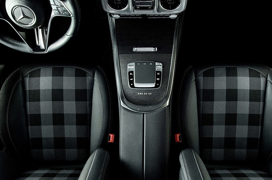 На центральной консоли можно разглядеть надпись «one of 20» (в переводе с английского – «один из 20»), которая намекает на эксклюзивность этого Mercedes-Benz G-Class. Отметим, производитель решил выпустить лимитированную спецверсию с прибавкой Past II Future к названию тиражом всего в двадцать экземпляров.