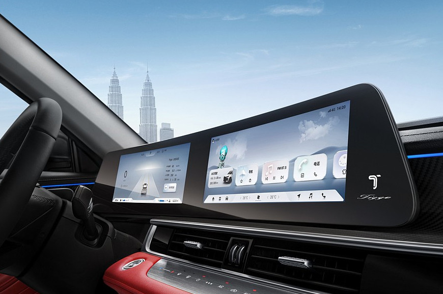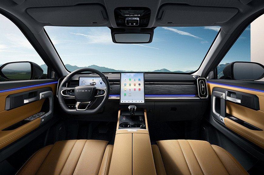 Внутри паркетник повторил Explore 06/Jaecoo J7, разве что перекомпонован центральный тоннель. Для модели заявлены виртуальная приборка, мультимедийная система с вертикальным планшетом, проекционный дисплей, беспроводная зарядка для смартфона, камеры кругового обзора, адаптивный «круиз», системы автоторможения и удержания в полосе.
