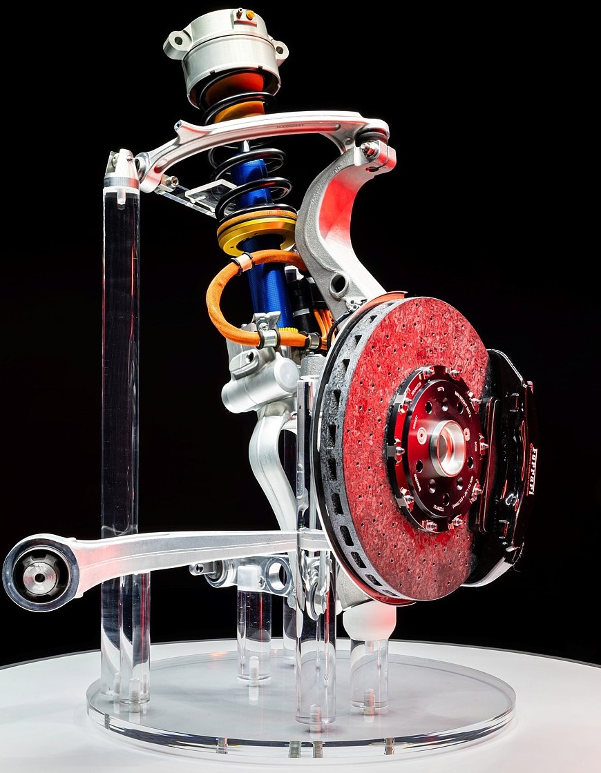 Колёсная база Ferrari Elettrica — 2960 мм, целевая снаряженная масса — 2300 кг, развесовка — 47/53 в пользу задней оси. Полностью независимая активная подвеска третьего поколения уходит корнями к кроссоверу Purosangue и флагманскому суперкару Ferrari F80, в которых, как известно используются регулируемые амортизационные стойки Multimatic с 48-вольтовыми актуаторами, но у Ferrari Elettrica своя архитектура и своя геометрия. Задняя подвеска Ferrari Elettrica вместе с задним силовым модулем крепятся к уникальному полому литому подрамнику, который в свою очередь крепится к кузову через резинометаллические шарниры или, проще говоря, сайлетнблоки — такое решение позволяет снизить уровень шума и вибраций в салоне. В заднюю подвеску вдобавок интегрирован рулевой мезанизм, чтобы сделать шасси полноуправляемым, максимальный угол поворота задних колёс — 2,15 градуса в любую сторону. Тормоза — карбон-керамические.