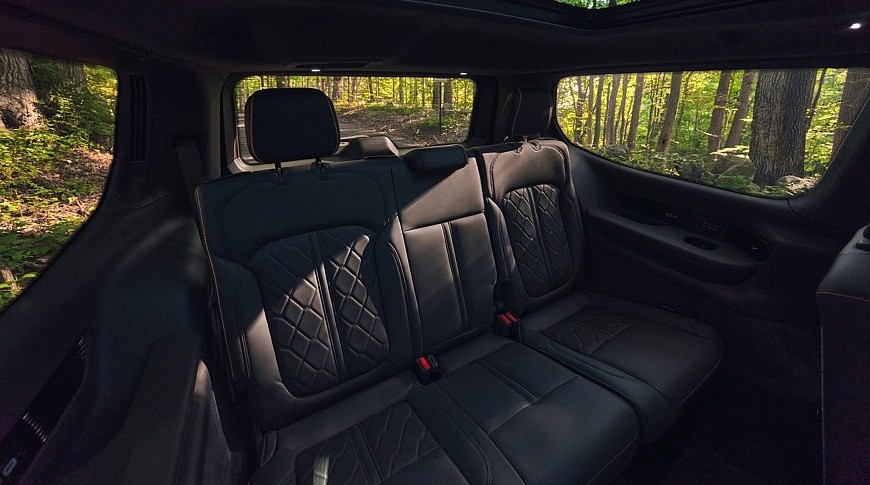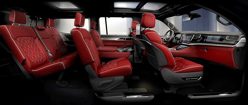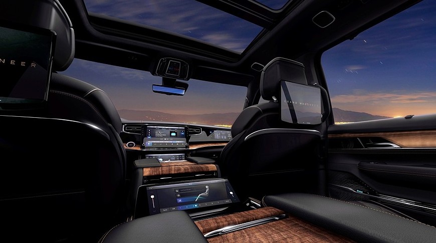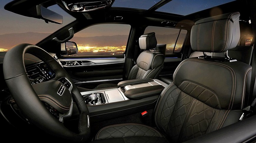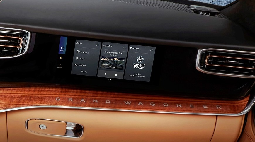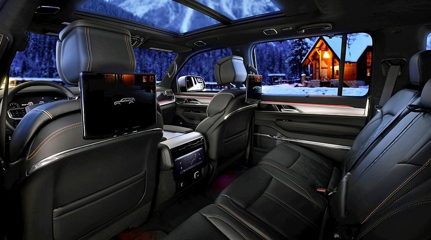 Между тем в салоне Jeep Grand Wagoneer блестящие детальки остались, принципиальных изменений здесь нет, но улучшены отделочные материалы, а проекционный экран на лобовом стекле стал шире и информативнее. Штатная аудиосистема McIntosh в зависимости от комплектации насчитывает 19 либо 23 громкоговорителя. Для пассажиров второго ряда доступны вентиляция сидений и собственные мультимедийные экраны.