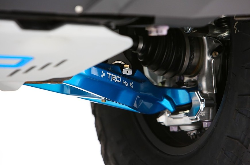 Шасси в привязке к концепту комплексно модернизировано и защищено снизу металлическими пластинами. Увеличен дорожный просвет и расширена колея, установлены более прочные рычаги и энергоёмкие амортизаторы Fox 2.5 Performance Elite Series. Более мощные передние тормоза взяты у большого пикапа Toyota Tundra. 17-дюймовые легкосплавные колёса обуты в 35-дюймовые «зубастые» шины.
