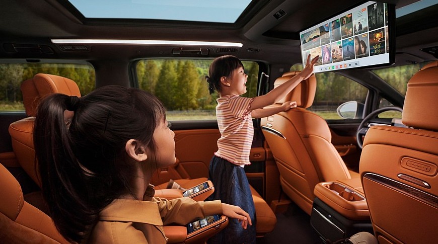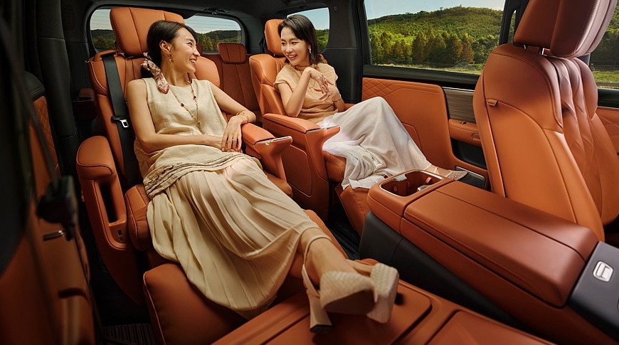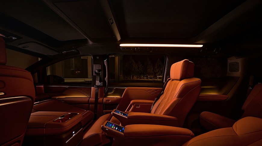 В списке оснащения минивэна числятся передние кресла с подогревом, вентиляцией и функцией массажа, устройства для беспроводной зарядки смартфонов в первом и втором ряду сидений, а также два панорамных люка на крыше. Для второго ряда предусмотрены оттоманки, откидные столики, подогрев, вентиляция и десятиточечный массаж с восемью различными режимами. Ещё новинке положена акустика Bose с 16 динамиками, голосовой ассистент с искусственным интеллектом, а также система, которая поддерживает комфортный уровень влажности.