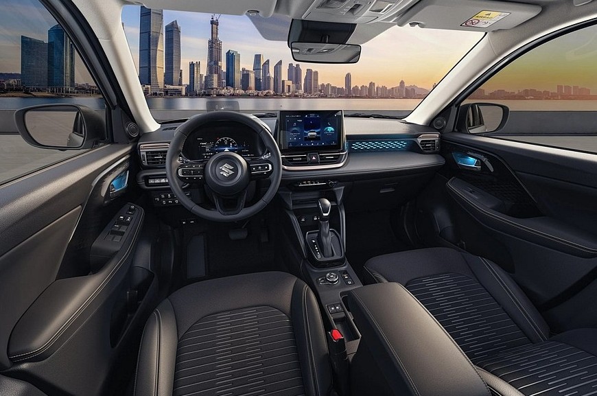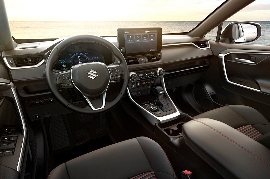 Внутри сейшельский Across тоже повторил Victoris, не считая расположения руля. В богатых комплектациях экспортной версии заявлены: виртуальная приборка на 10,25 дюйма, мультимедийная система с возвышающимся над передней панелью планшетом диагональю 10,1 дюйма, проекционный дисплей, беспроводная зарядка для смартфона, панорамный люк, камеры кругового обзора, адаптивный круиз-контроль.