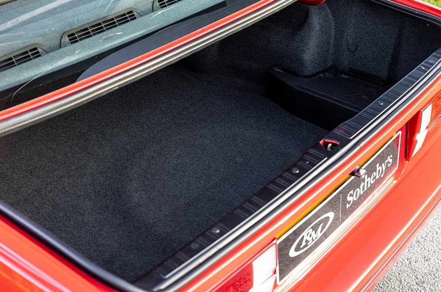 Выставленный на аукционе RM Sotheby’s экземпляр красного цвета Brillantrot с чёрным кожаным салоном был выпущен в 1990 году, среди заводских опций есть кондиционер. До 1998 года включительно автомобиль находился у первого владельца в Италии, затем был продан новому владельцу в Великобритании, затем переместился в Швейцарию, где в 2013 году его купил нынешний хозяин. По фотографиям видно, что за автомобилем тщательно следили, обслуживание он проходил у авторизованных компаний Munich Legends и Binelli Baar, пробег на текущий момент составляет 53 118 км.