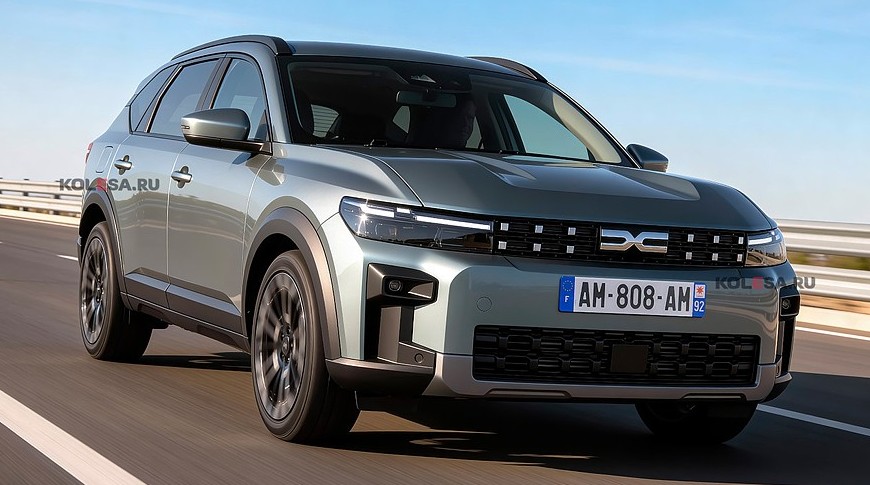Согласно рендерам, этот семейный кроссовер получит оформление экстерьера в актуальном фирменном стиле Dacia. Новинка может получить длинный покатый капот с выштамповками, оптику простой формы с полосками ходовых огней, причём фары визуально соединены друг с другом с помощью радиаторной решётки с хромированными «пикселями» и логотипом по центру.