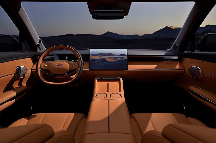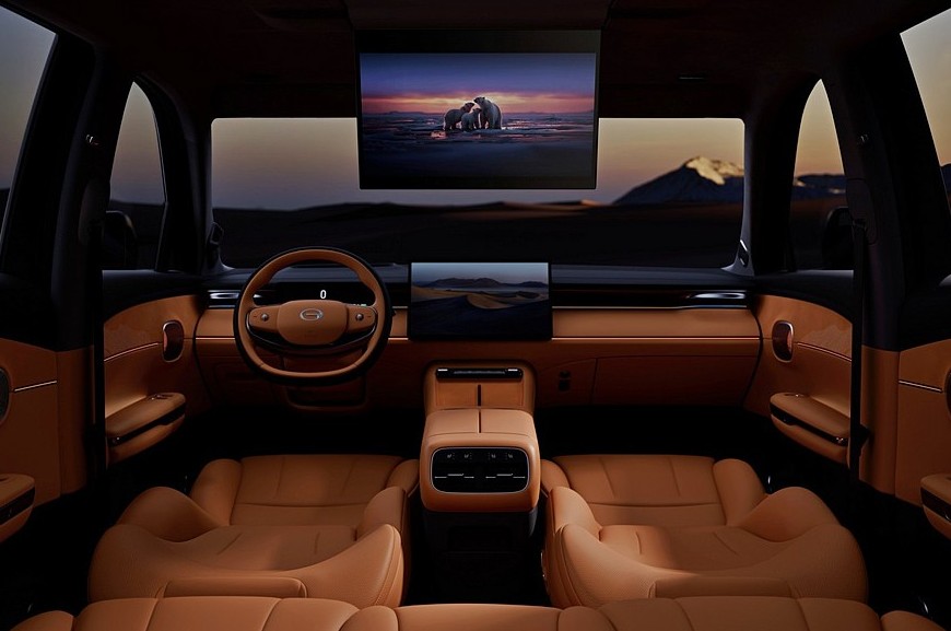 Внутри S7 – раздельные экраны приборки и мультимедийной системы, двухспицевый руль и двухэтажный тоннель, на котором расположены две площадки для беспроводной зарядки смартфонов. За управление трансмиссией отвечает подрулевой рычажок. На домашнем рынке для GAC Trumpchi S7 еще можно заказать отдельный экран для задних седоков – он крепится к потолку. В Китае в списке оборудования модели также заявлены подогрев, вентиляция и массажер сидений, откидная подставка для ног заднего правого пассажира, проекционный дисплей, климат-контроль, подогрев руля, камеры кругового обзора, адаптивный круиз-контроль.
