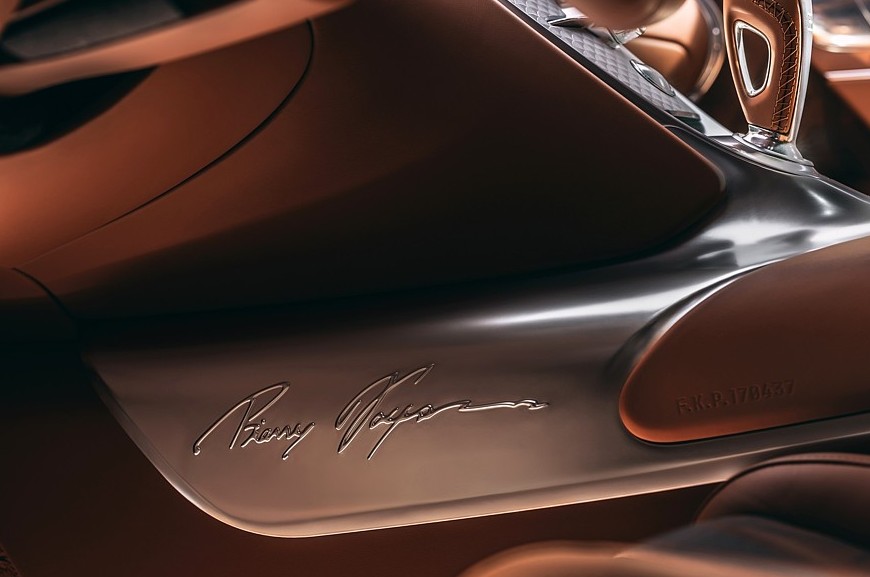 Суперкару Bugatti F.K.P. Hommage досталась относительно свежая версия двигателя W16 — от Bugatti Chiron Super Sport, то есть мощностью 1600 л.с., под него модернизирована стандартная система охлаждения Вейрона и доработан 7-ступенчатый «робот» с двумя сцеплениями. Как изменились динамические характеристики, пресс-служба Bugatti не сообщает. Для справки скажем, что стандартный 1200-сильный Veyron набирает первую «сотню» за 2,5 с, максимальная скорость — 431 км/ч.