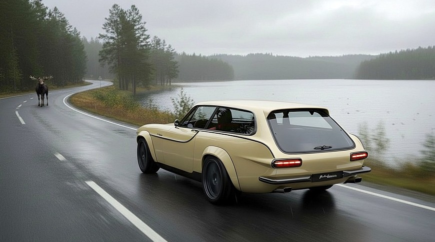 Универсалы на базе купе обычно называют на британский манер шутинг-брейками. Volvo P1800 ES выпускался всего два года и сегодня считается достаточно редкой машиной на вторичном рынке, у нас на сайте есть большой материал об опыте владения таким универсалом. Очень классный рестомод на базе купе Volvo P1800 несколько лет назад сделала шведская гоночная команда Cyan Racing, а Autoforma и Volvo-Lotte взяли в работу именно шутинг-брейк.