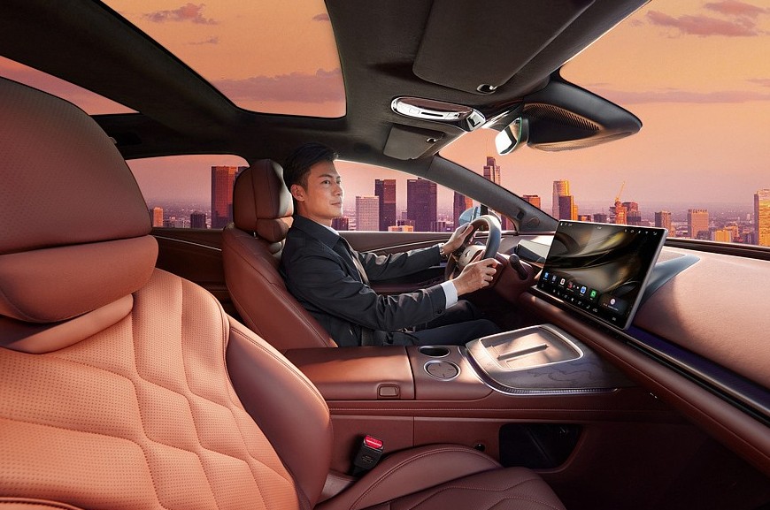 Главные фишки дизайна экстерьера – двухэтажная головная оптика, внушительный передний бампер и сделанные в виде единой плашки задние фонари. Кроме того, седан имеет безрамочные двери с выдвижными ручками и две стеклянные секции в крыше. Hyptec A800 «стоит» на 20-дюймовых колесах. В салоне – раздельные экраны приборки (8,8 дюйма) и мультимедийной системы (15,6 дюйма). Мультимедиа работает на операционке HarmonySpace 5 от Huawei. За управление трансмиссией отвечает подрулевой рычажок.