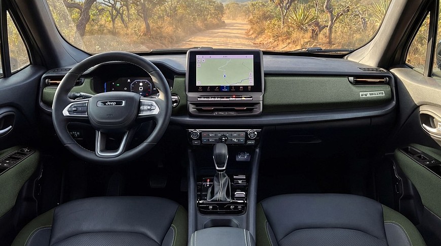 Все версии – Altitude, Longitude, Sahara и Willys – получили пересмотренный интерьер, с новым тачскрином информационно-развлекательной системы с более высоким разрешением и интегрированной Alexa, его диагональ равна 10,1 дюйма. Перед водителем находится 7-дюймовый виртуальный щиток приборов, сбоку – изменённая центральная консоль, а сидения получили новую отделку. Богатым исполнениям Sahara и Willys теперь положены также электрорегулировки водительского кресла.