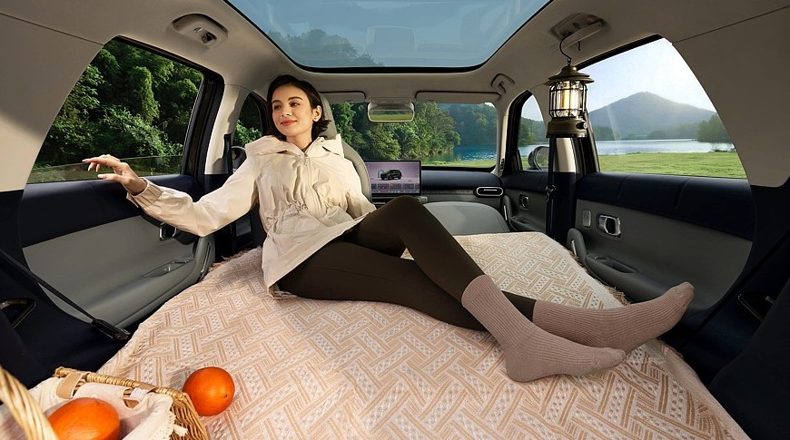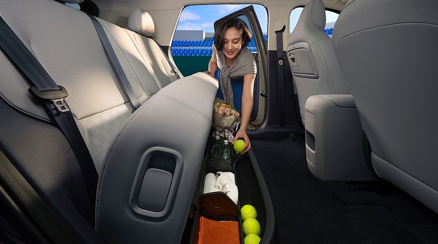 Салон — пятиместный, с 8,8-дюймовым приборным экраном и 14,6-дюймовым мультимедийным экраном (разрешение — 2,5К). В базовое оснащение входят фронтальные и боковые подушки безопасности, обивка из кожзама, кондиционер, камеры кругового обзора, круиз-контроль, автопарковщик, аудиосистема с шестью динамиками, видеорегистратор. Объём багажника — 602 л, со сложенными спинками заднего дивана — 1549 л. Под подушкой заднего дивана предусмотрена разбитая на лотки вместительная вещевая ниша.