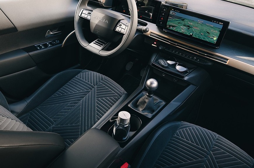 В салоне же изменения имеются: так, Lancia Ypsilon Turbo 100 получила три педали и лишилась полукруглого столика из биопластика с устройством для беспроводной зарядки смартфонов. Теперь на центральной консоли располагается только ниша для хранения мелочёвки, но это позволило поднять центральный тоннель для удобного расположения рычага ручной коробки передач с классическим круглым навершием.