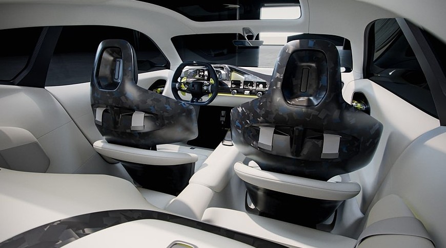 Концепт снабдили пневмоподвеской и активными аэродинамическими элементами, которые расположены как в передней части, так и на корме. В первом случае модель «отращивает» сплиттер и пару вертикальных рёбер (а ещё меняет цвет светового рисунка фар), во втором – активизирует антикрыло на крышке багажника и меняет положение диффузора.
